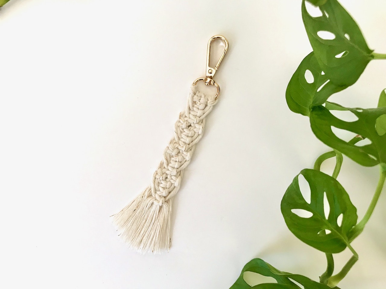 Le tutoriel inclus des photos et des vidéos des noeuds pour chaque porte-clés. Les 4 porte-clés sont de niveaux de difficulté différents afin de vous permettre de travailler le macramé par étape sur de petits projets.